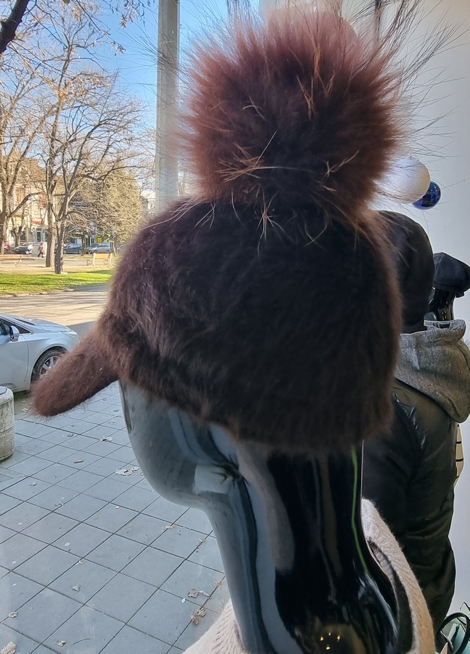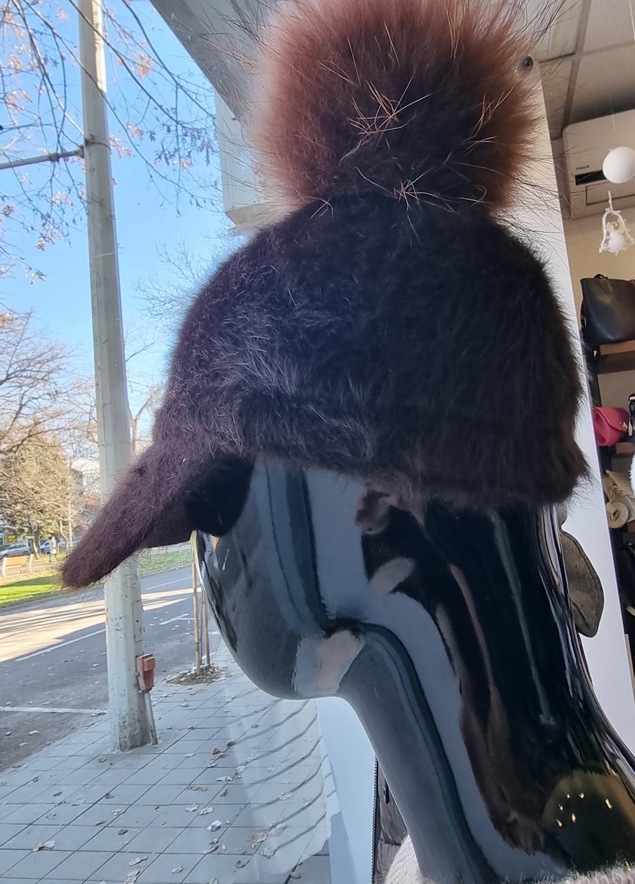 Шапка ангора с пухче кафява
