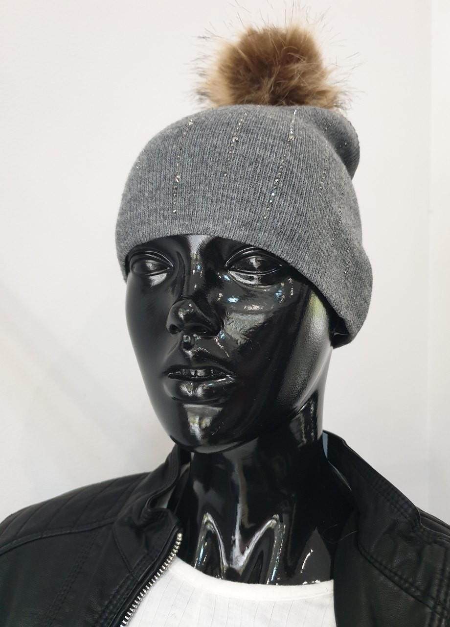 Шапка с пухче сива