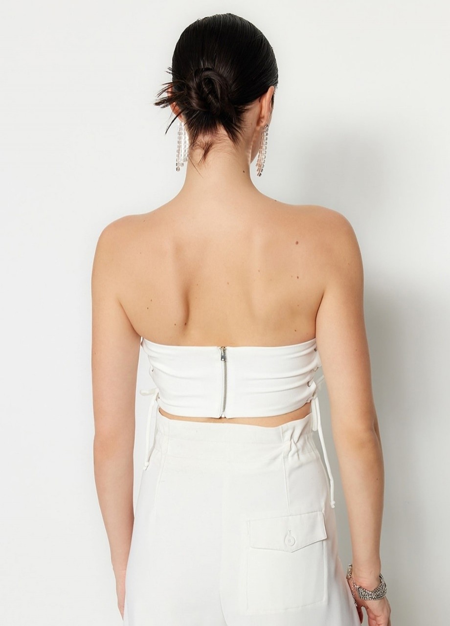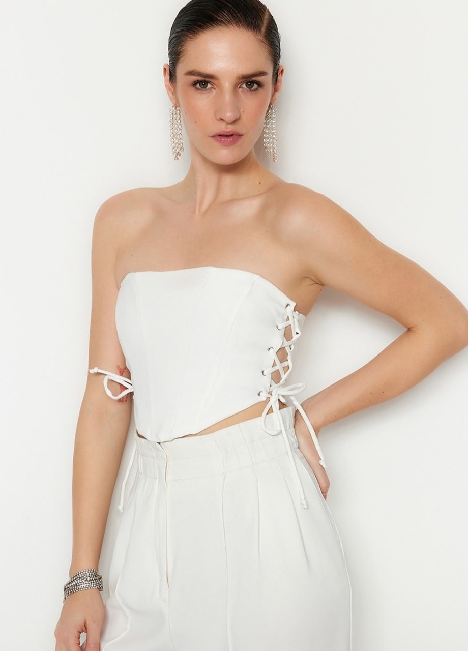 Къс топ тип корсет бял