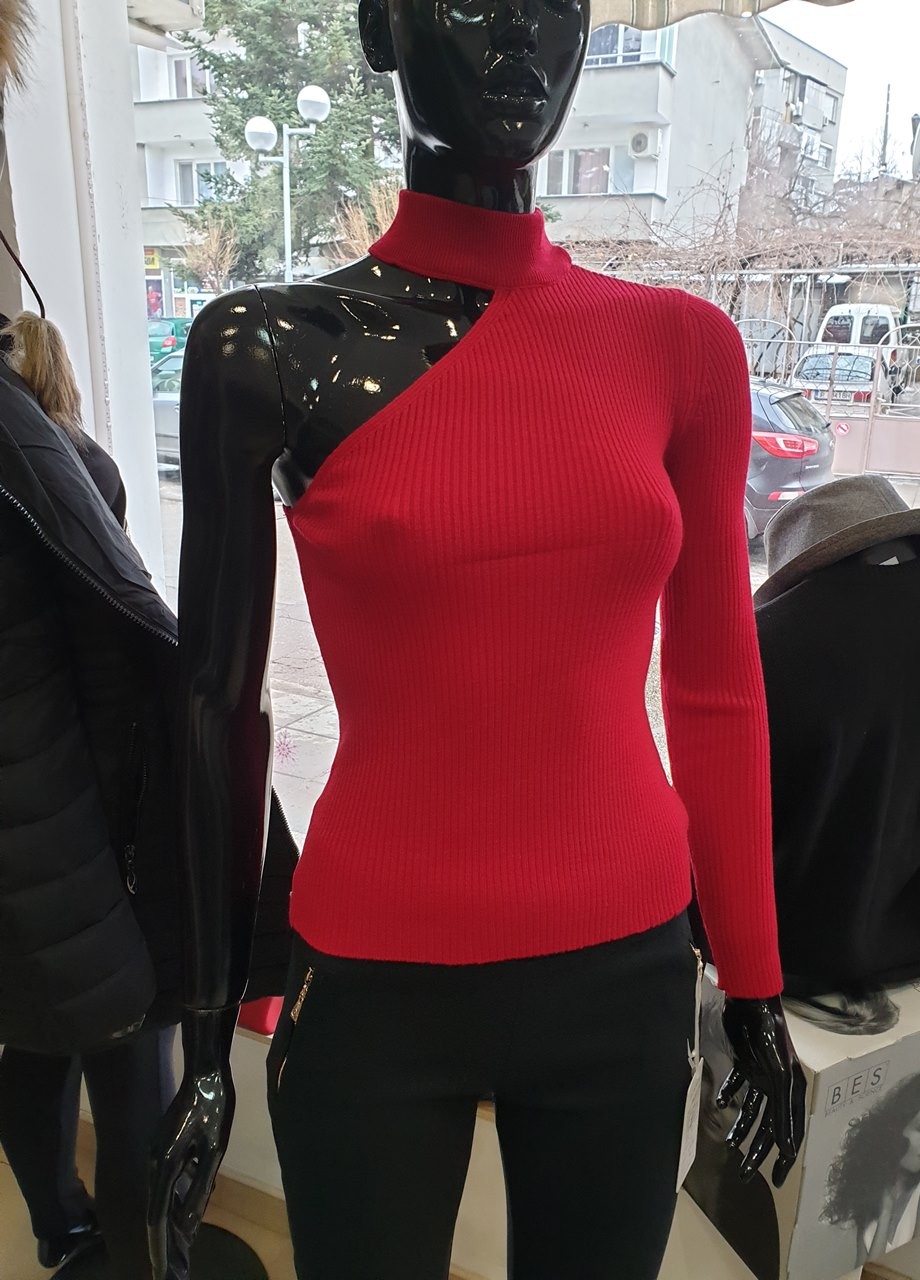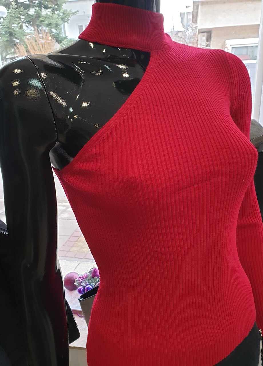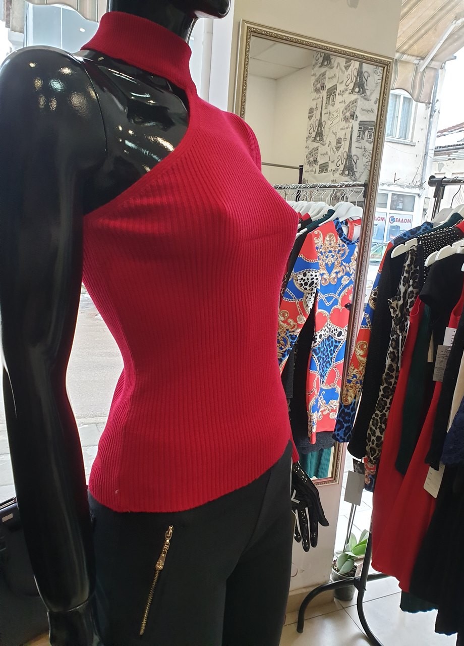 Червена блуза с голо рамо