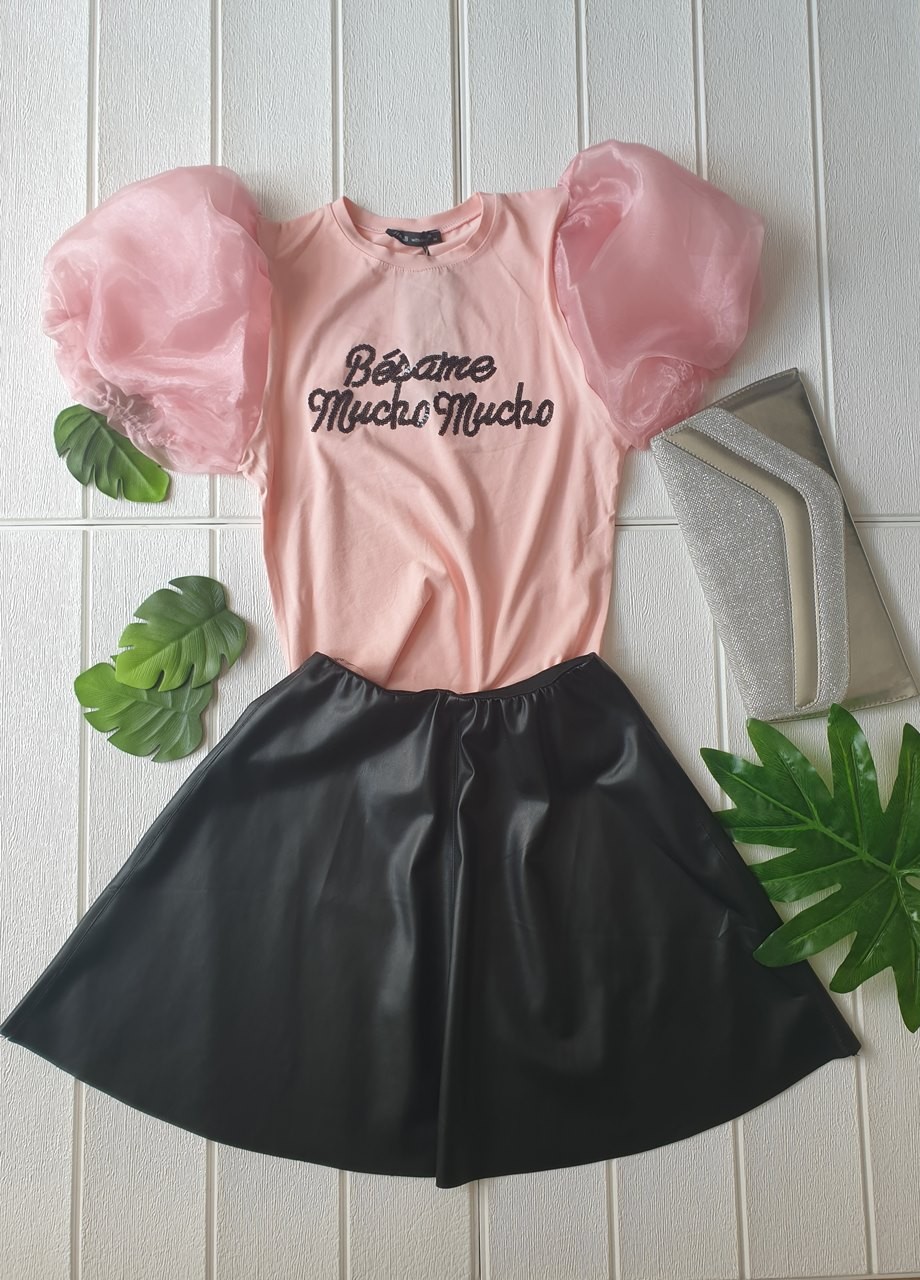 Блуза с тюл ръкави розова