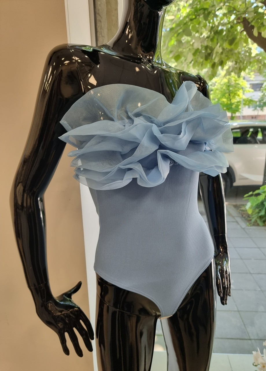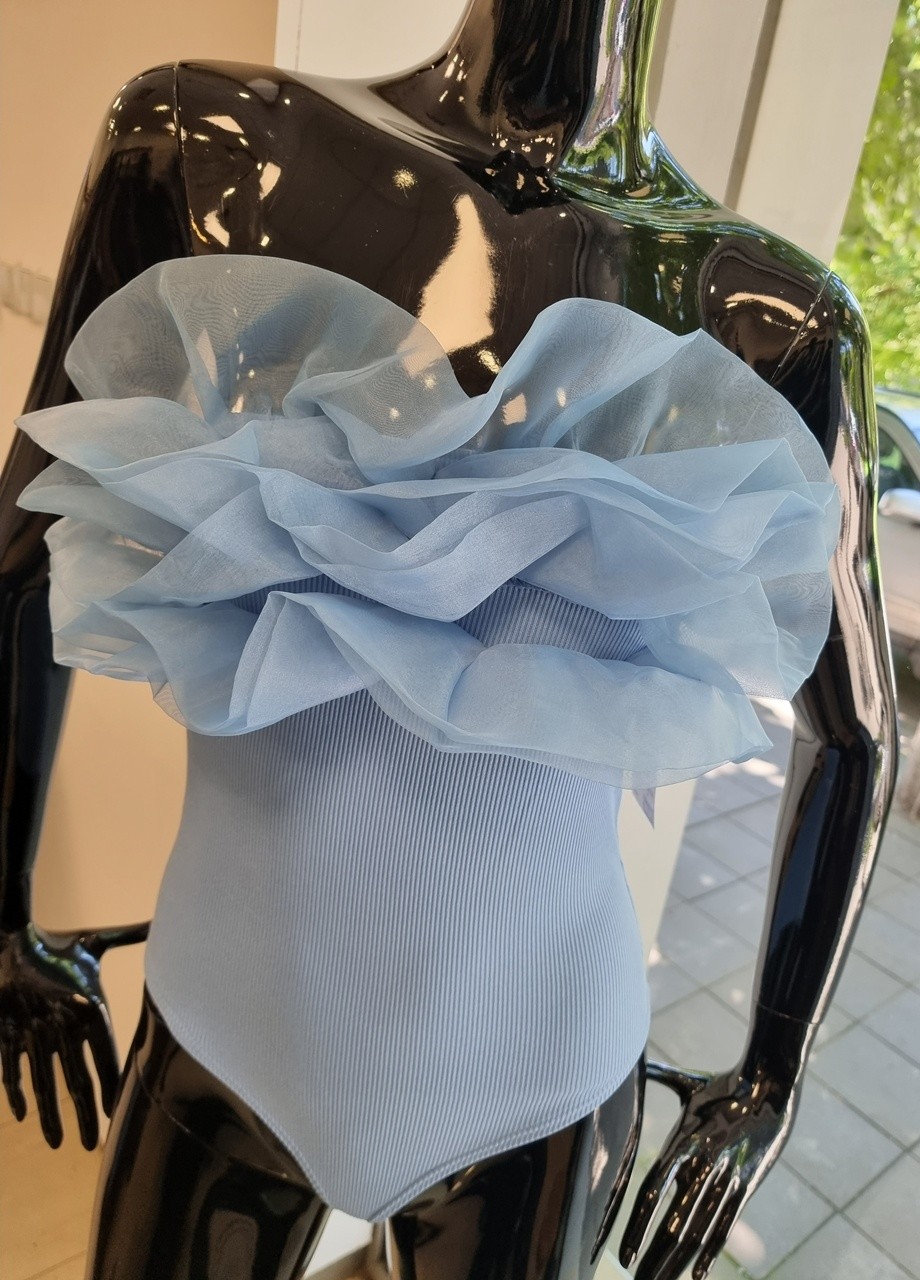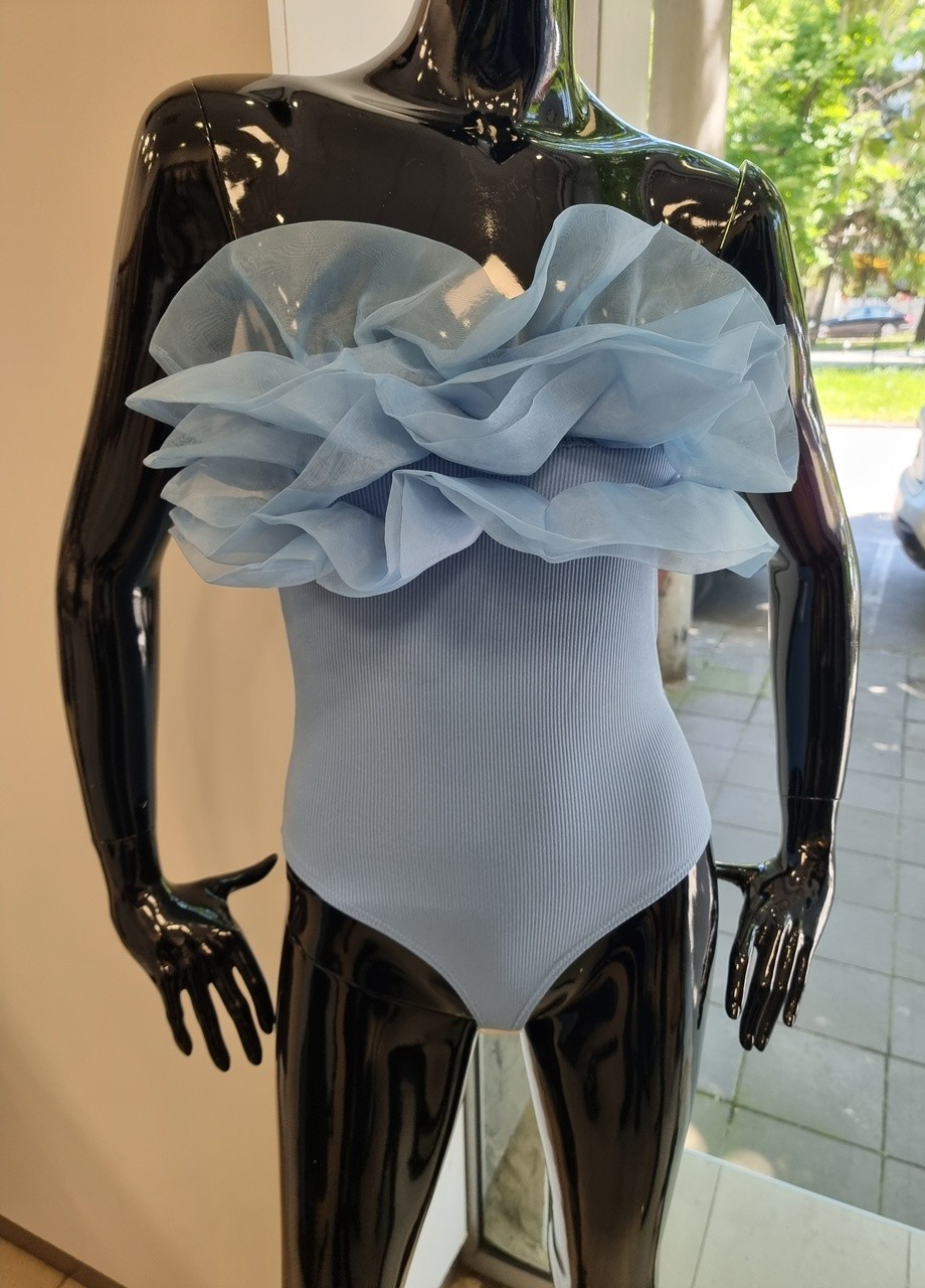 Боди с тюл синьо