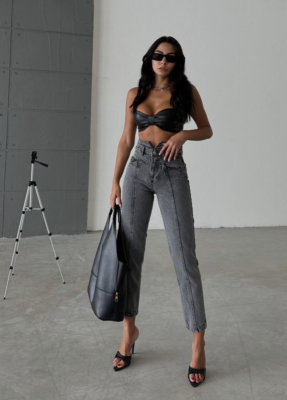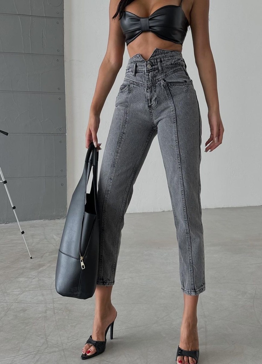 Дънки PONZA MOM сиви