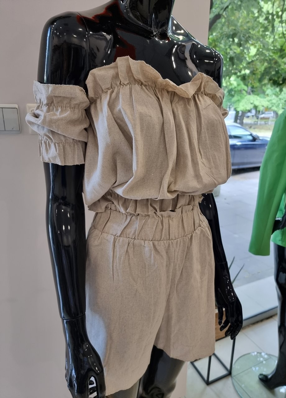Долна част - панталон къс: свободен, 2 джоба, ластичен колан