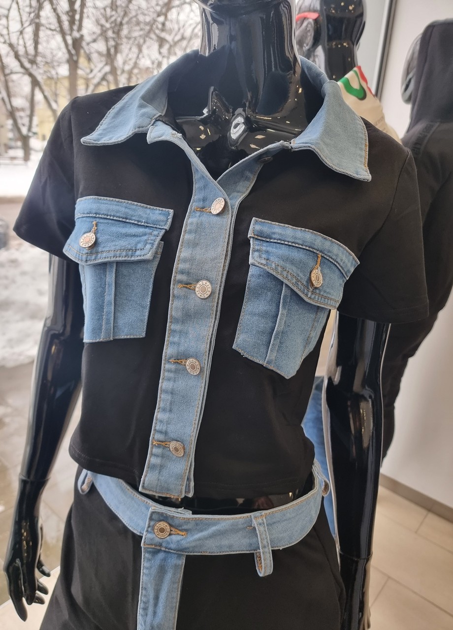 Комплект с деним черен
