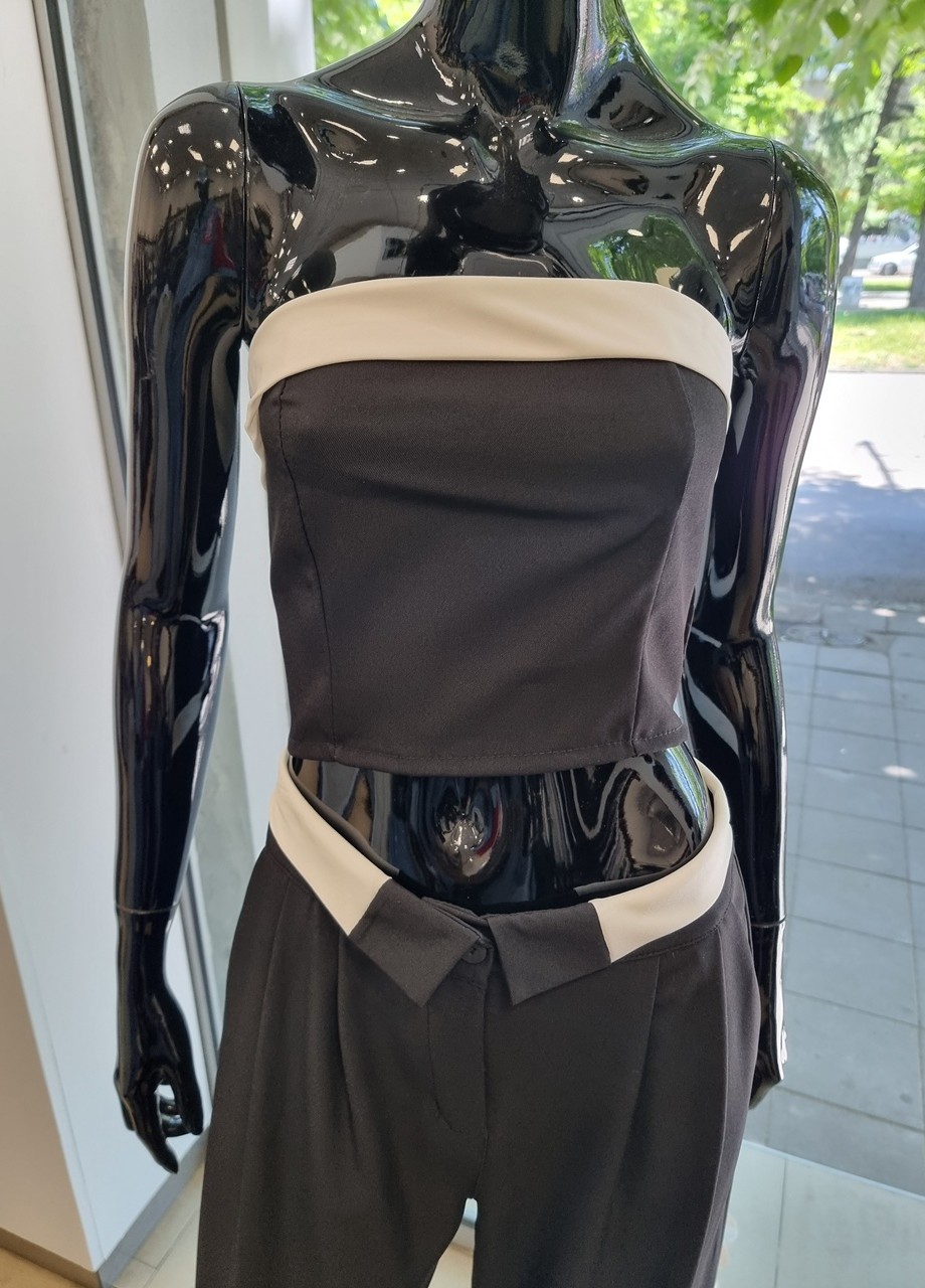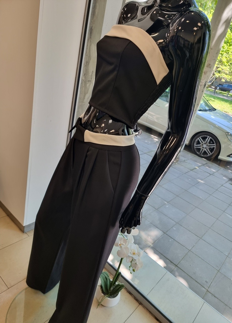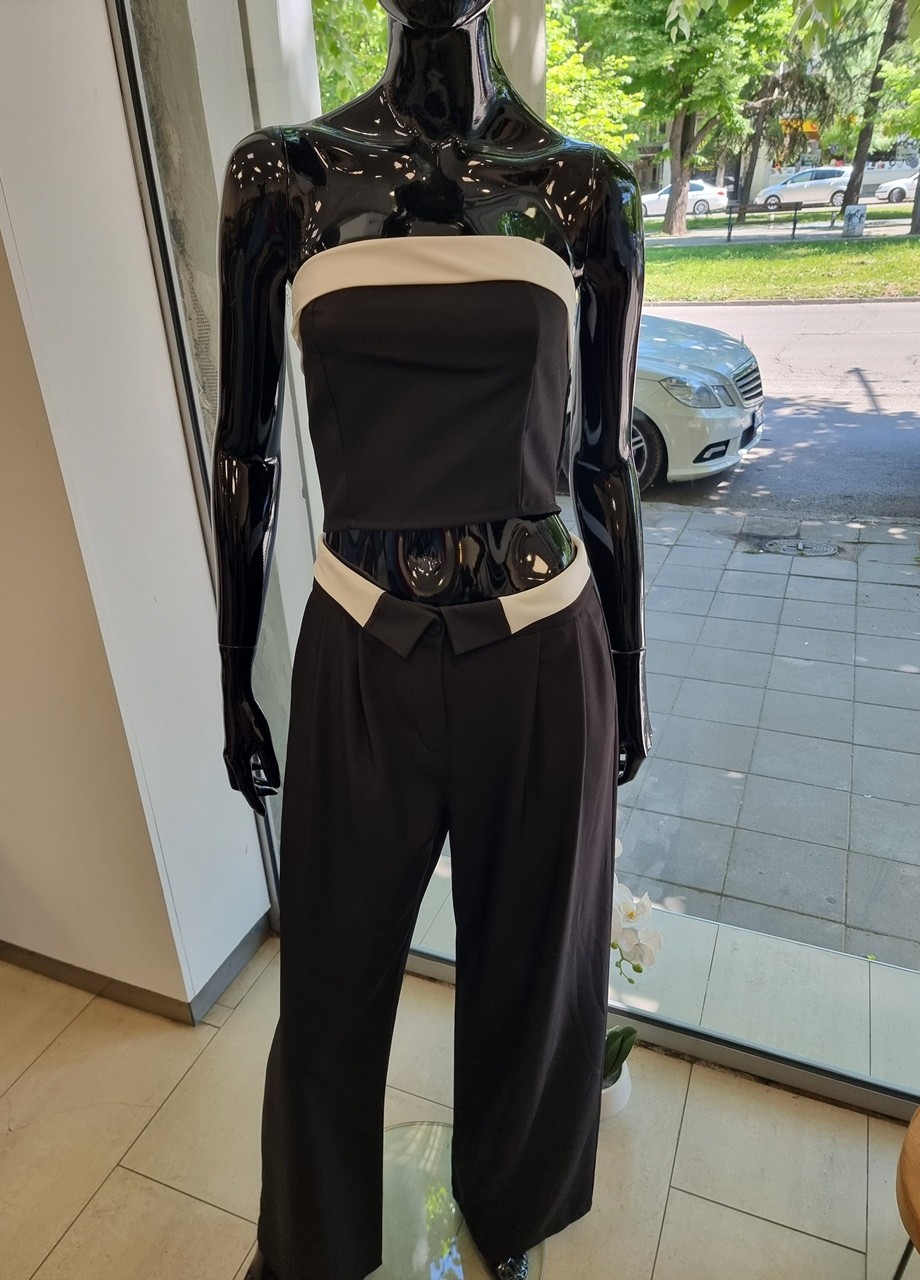 Кройка: бюстие по тялото и панталон с широк крачол