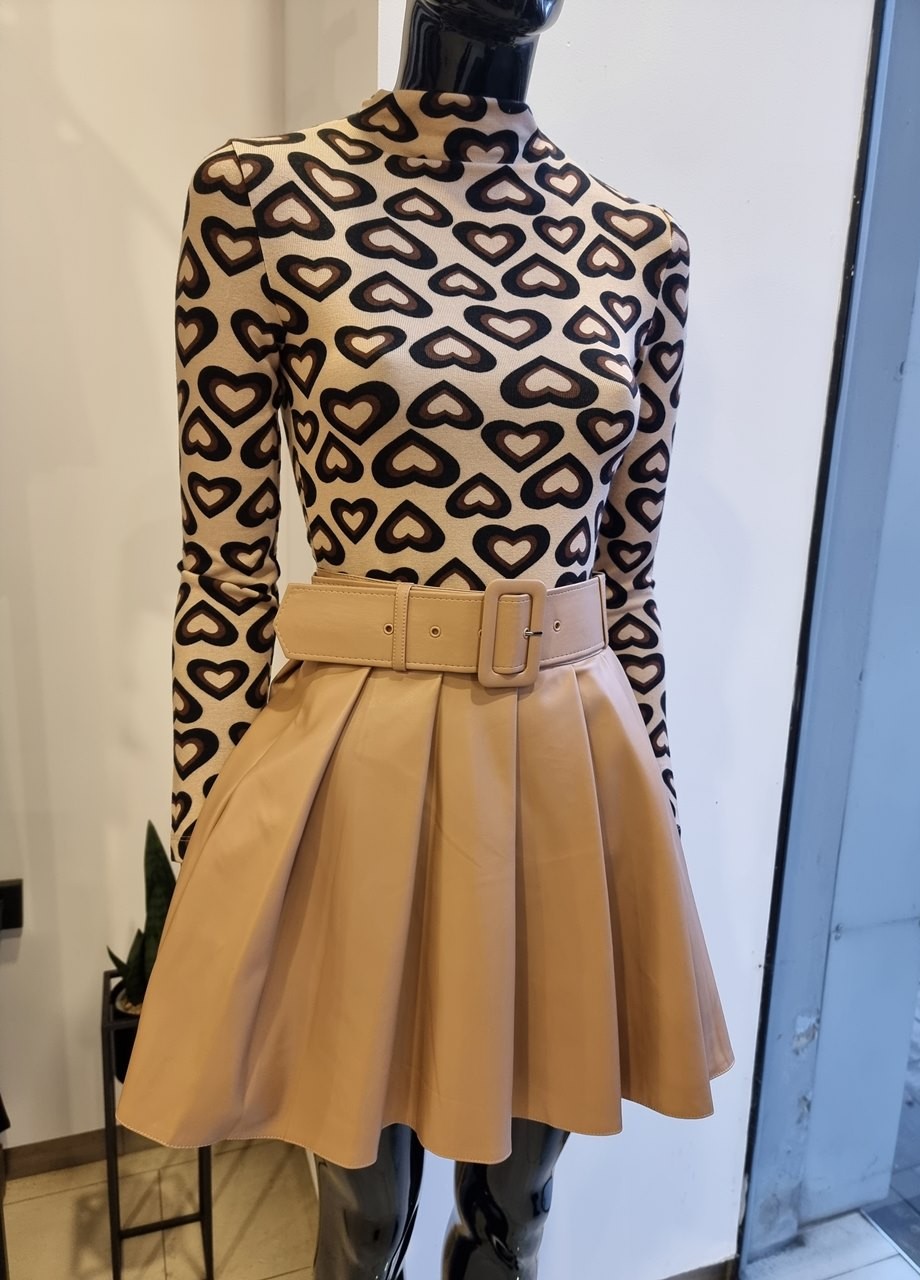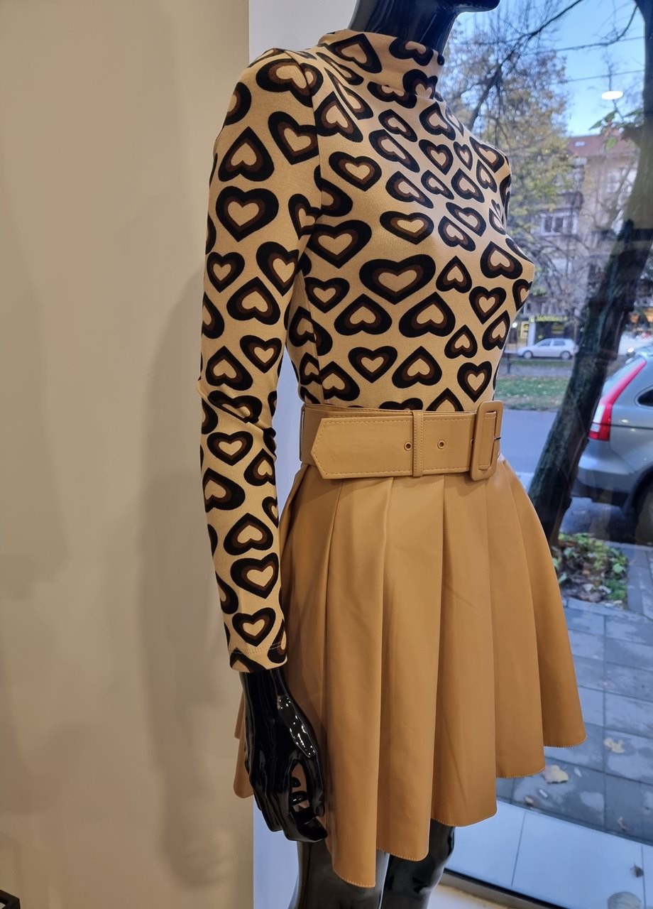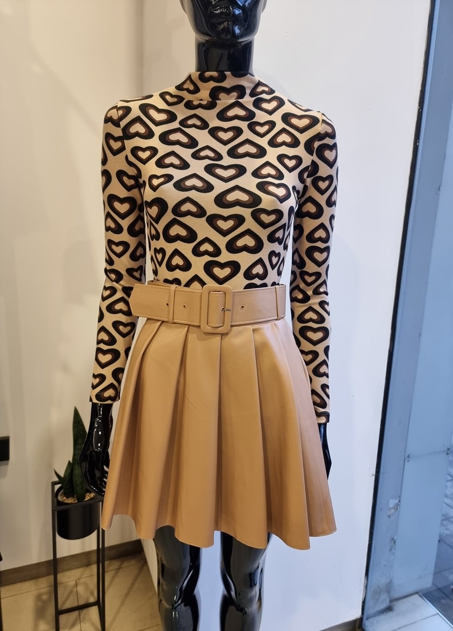 Пола кожа плисе бежова
