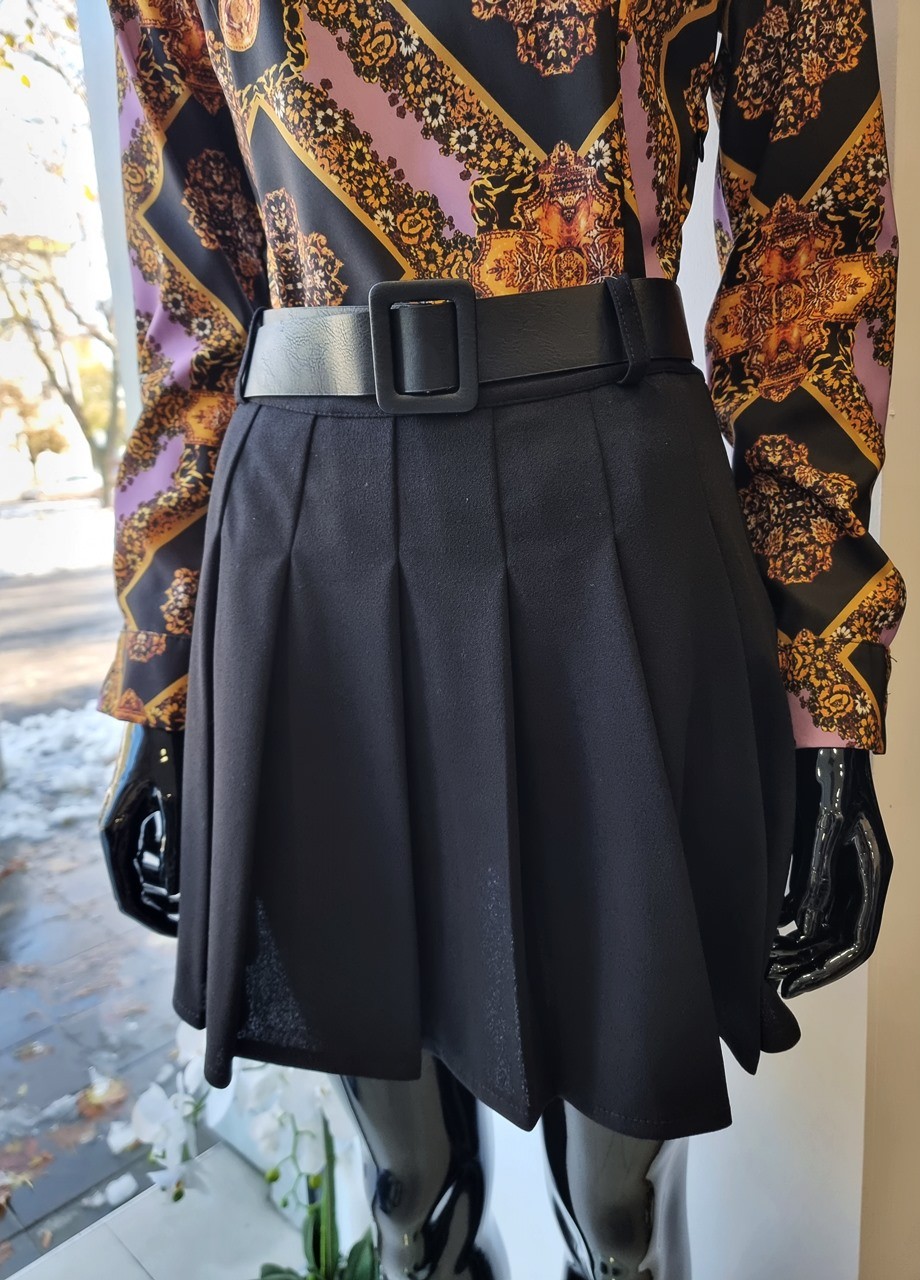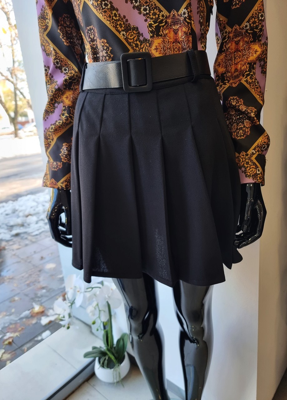 Пола къса плисе черна
