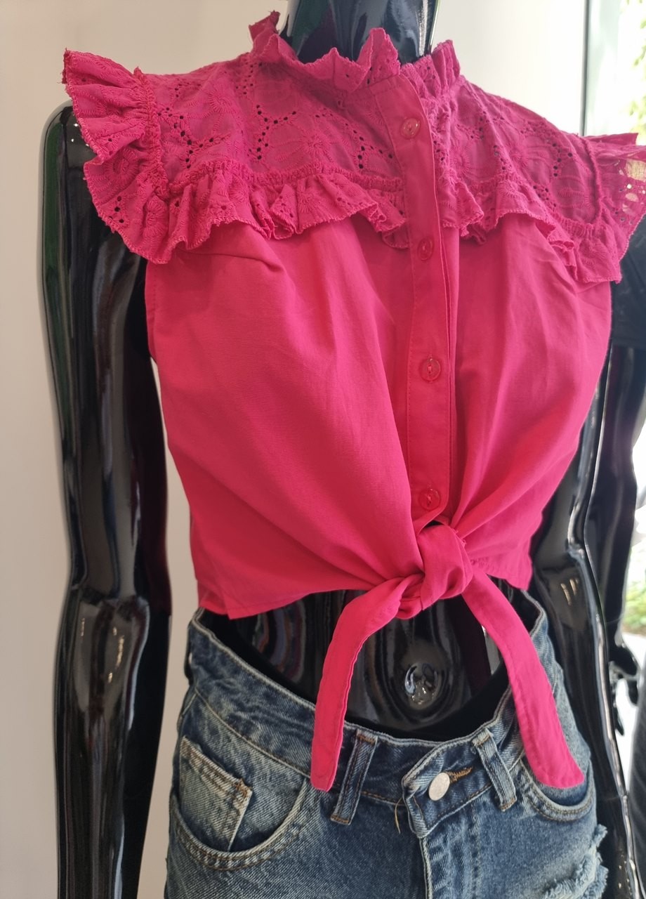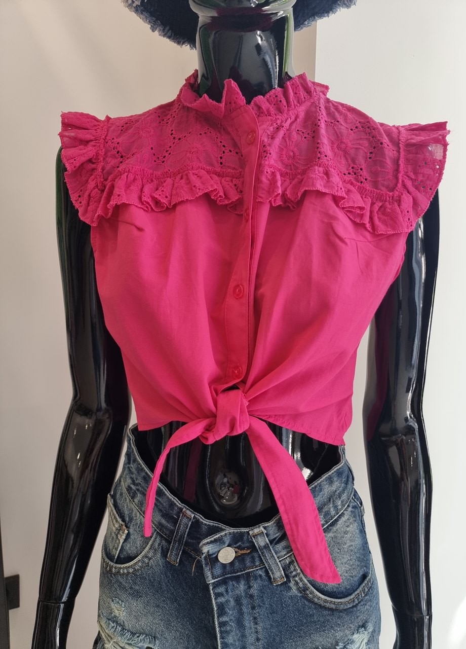 Блузка с връзки в циклама