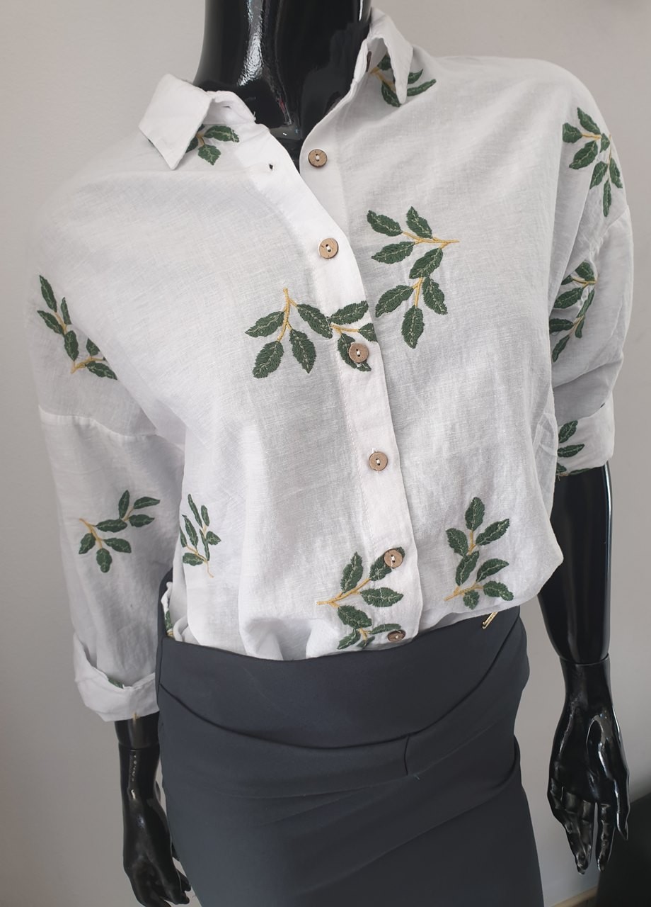 Риза с лен и бродерия