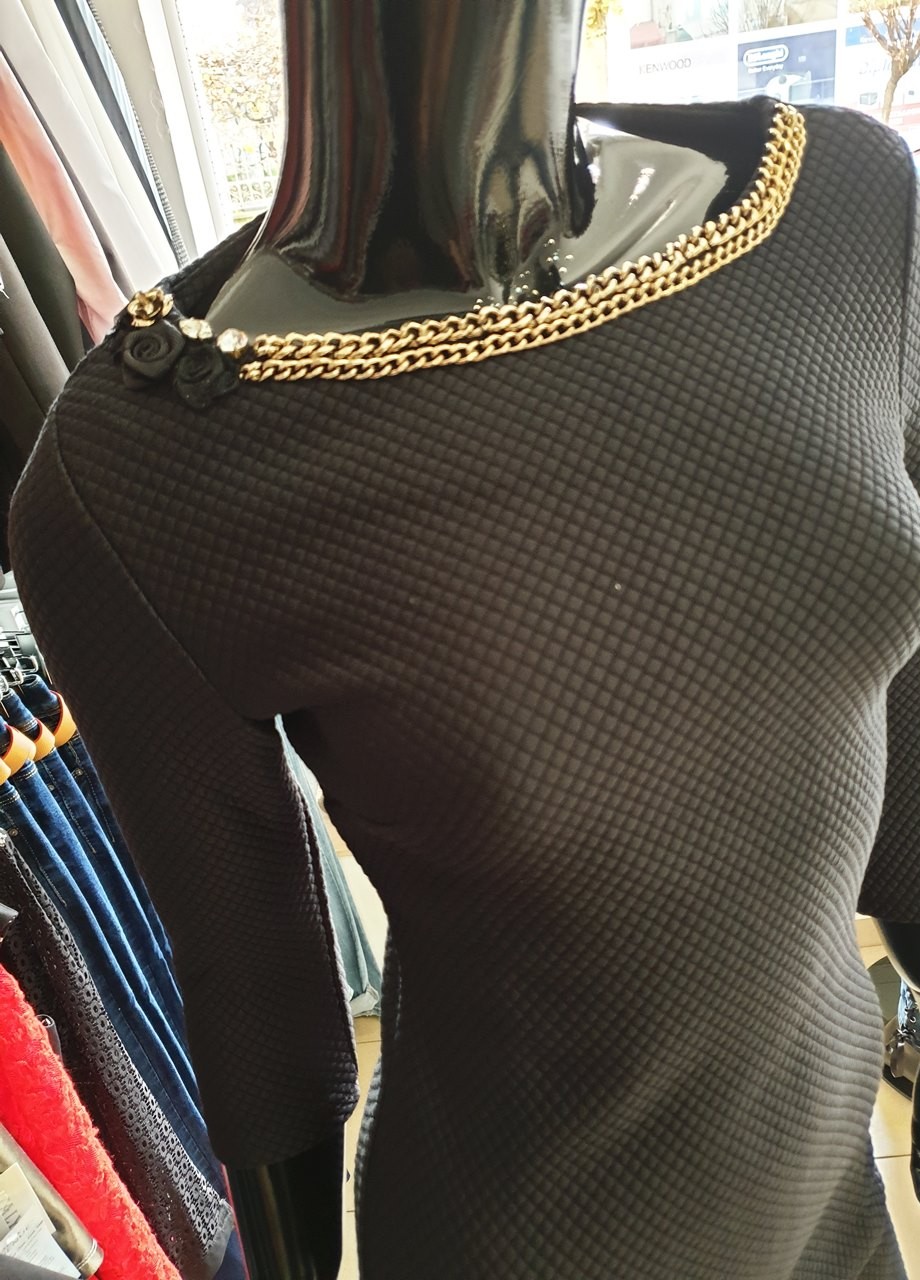 Детайли: златиста верижка по деколтето