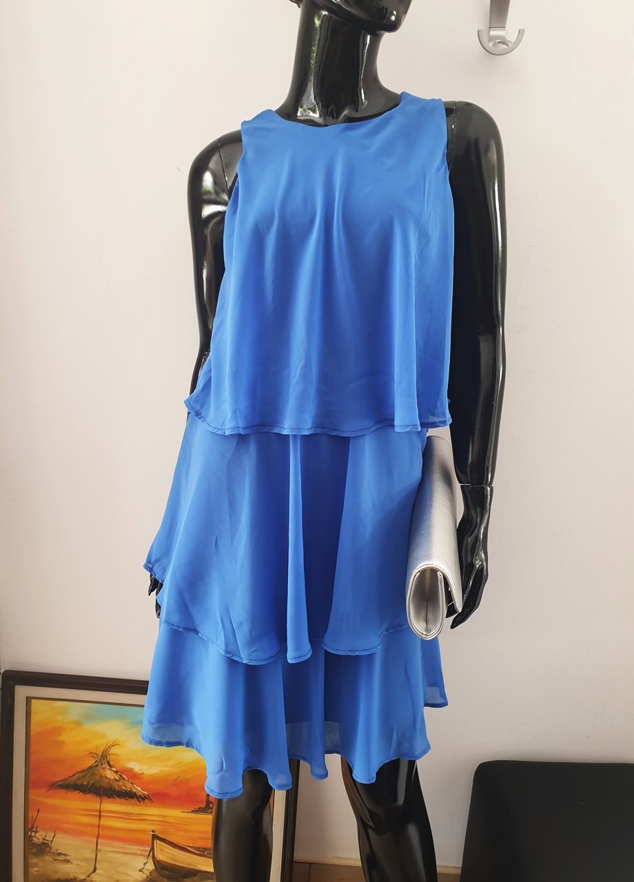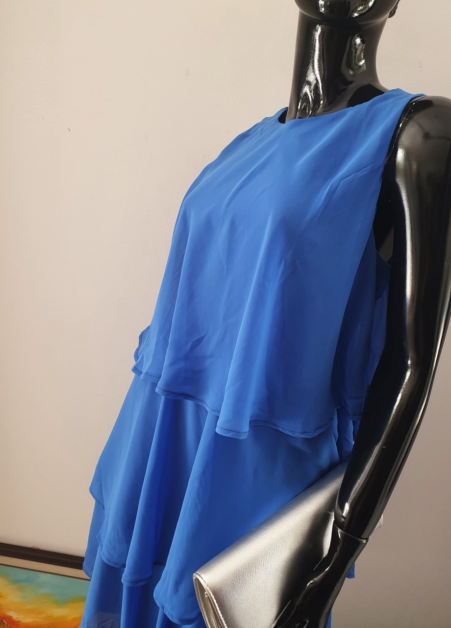 Рокля волани синя