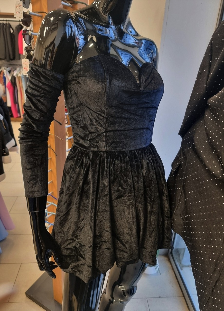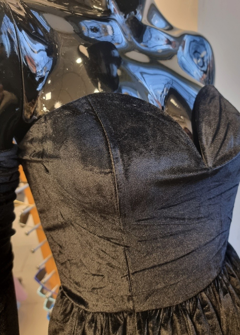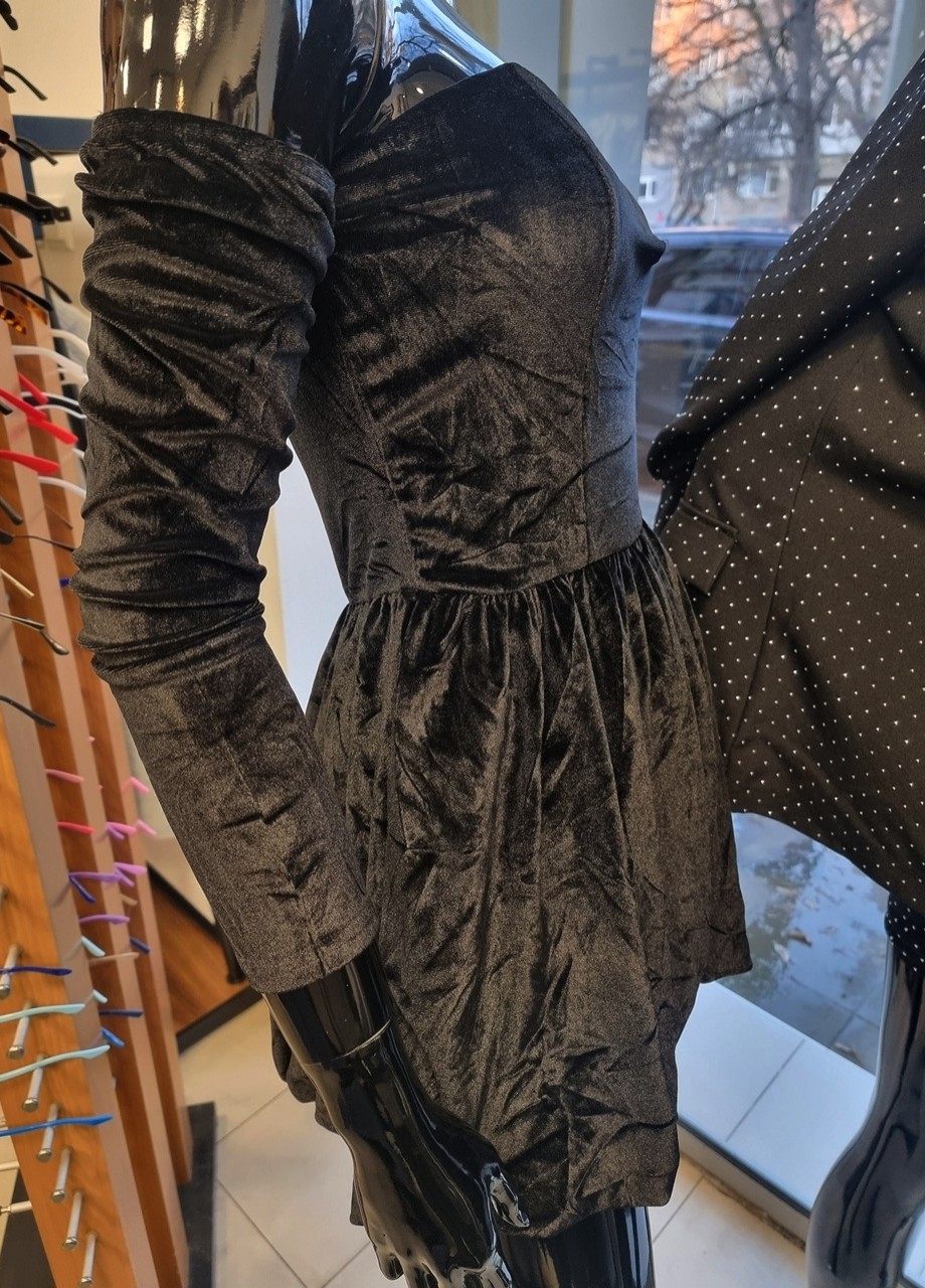 • Луксозна кадифена материя със специфичен разкроен силует, който придава обем в долната част. Тази комбинация създава елегантна, но и игрива визия, идеална за вечерни събития и коктейли. Черната кадифена рокля тип балон е универсална дреха, която лесно се адаптира към различни поводи.