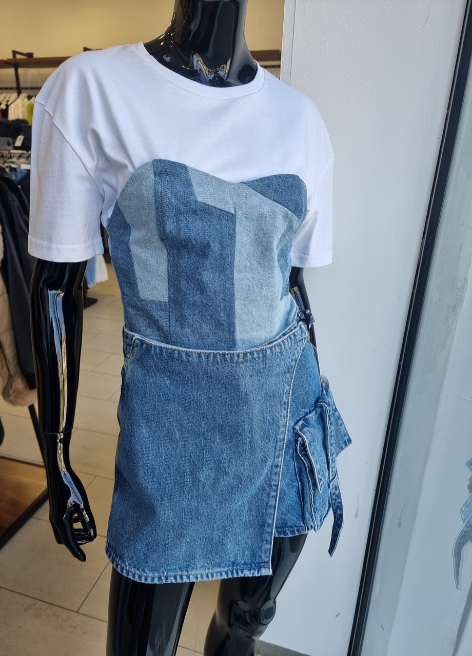 Тениска с дънково бюстие