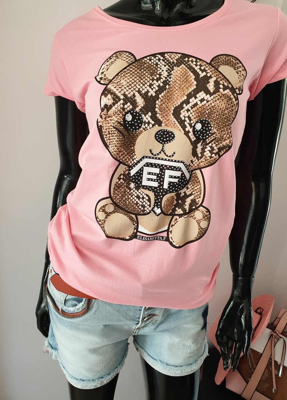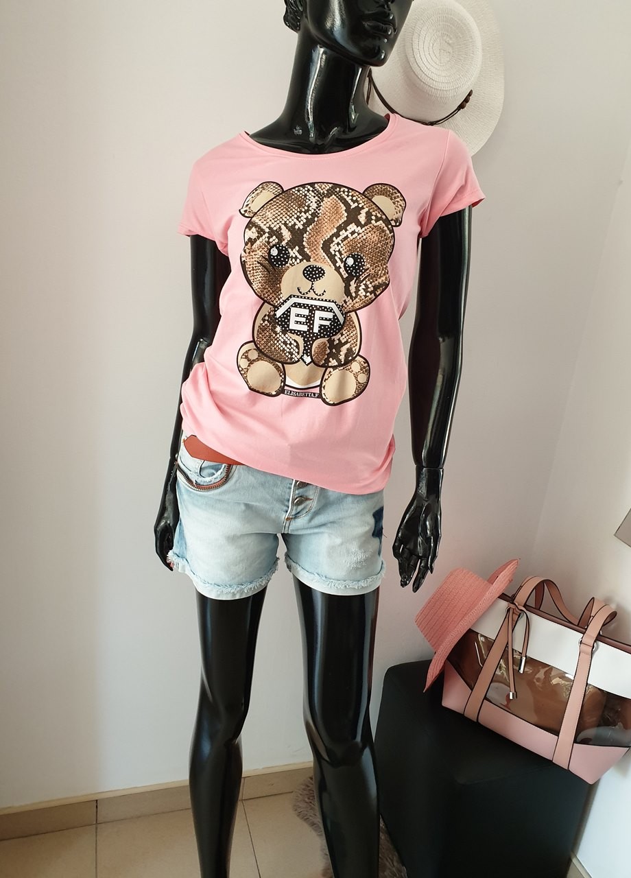 Тениска с мече розова