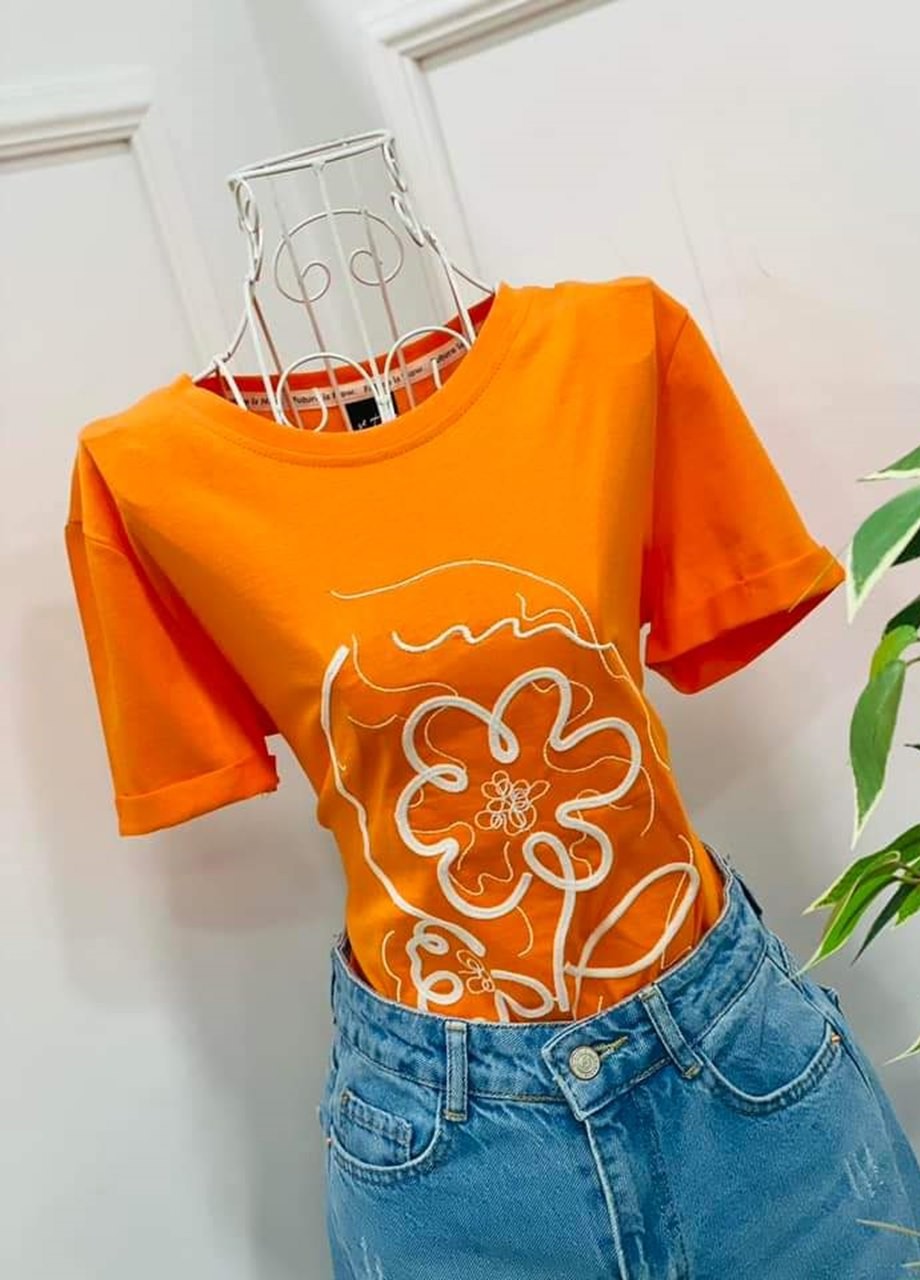 Тениска оранжева с цвете