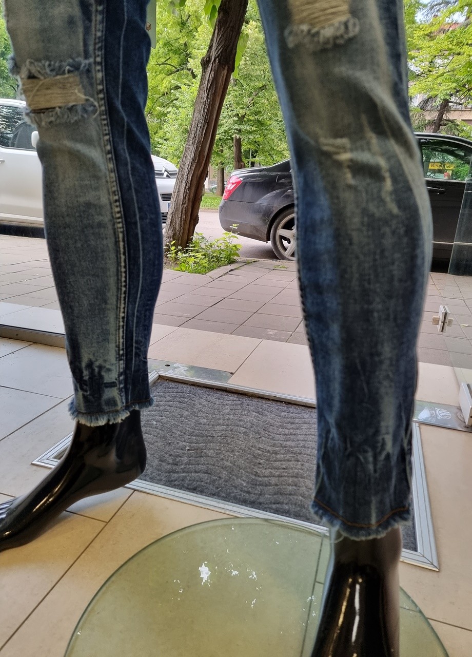 Детайли: еластична талия, захабен ефект, кръпки